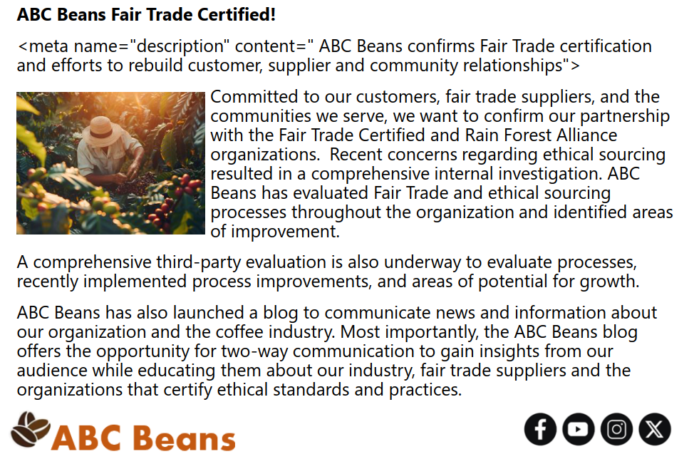 Our mission is to deliver superior coffee while strengthening relationships throughout the industry and the communities we serve